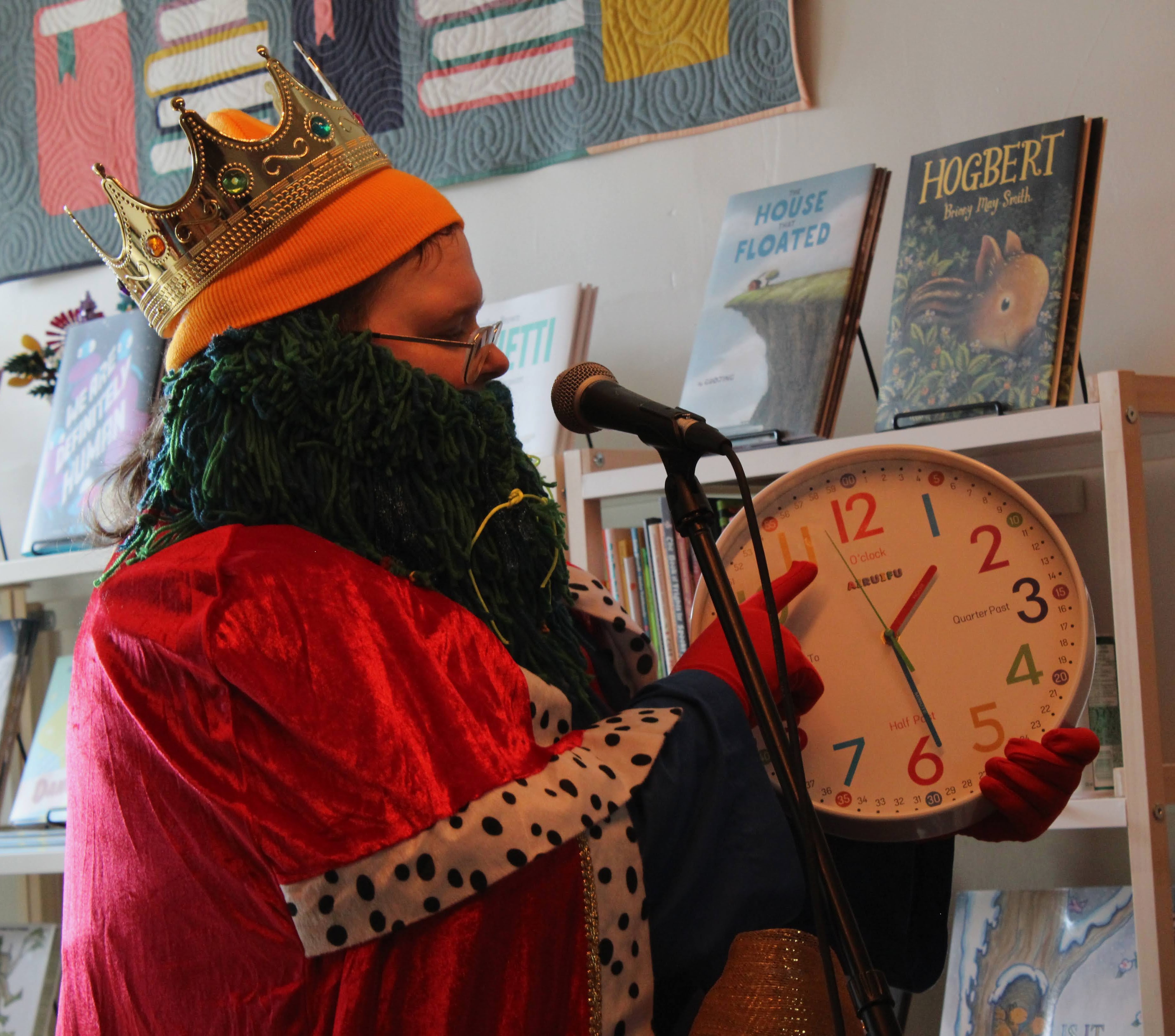 This past Saturday, in the midst of the Highly Likely festival, Take Cover Books was visited by a quartet of interdimensional travellers (as well as Friendly the Dinosaur). King Spatula, joined by guitarist Star Star the Far Star, drummer Professor Curious, and pianist the Lone Stranger, played for a room of delighted children and their bemused and bewildered parents.